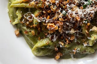 Scallion Walnut Pesto & Scissor Cut Noodles
